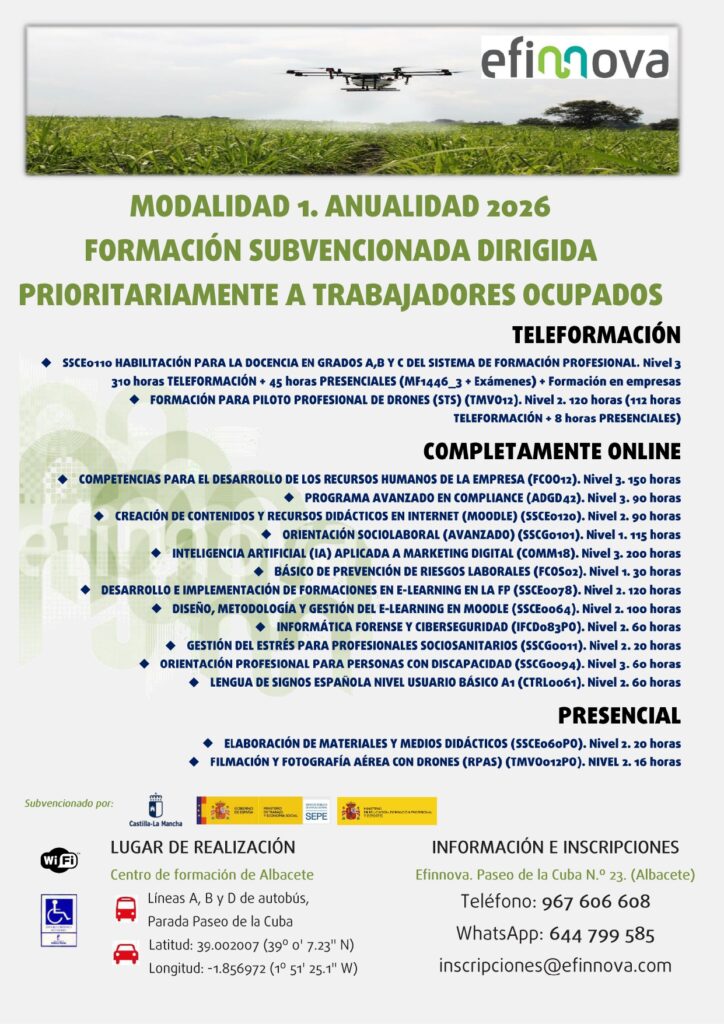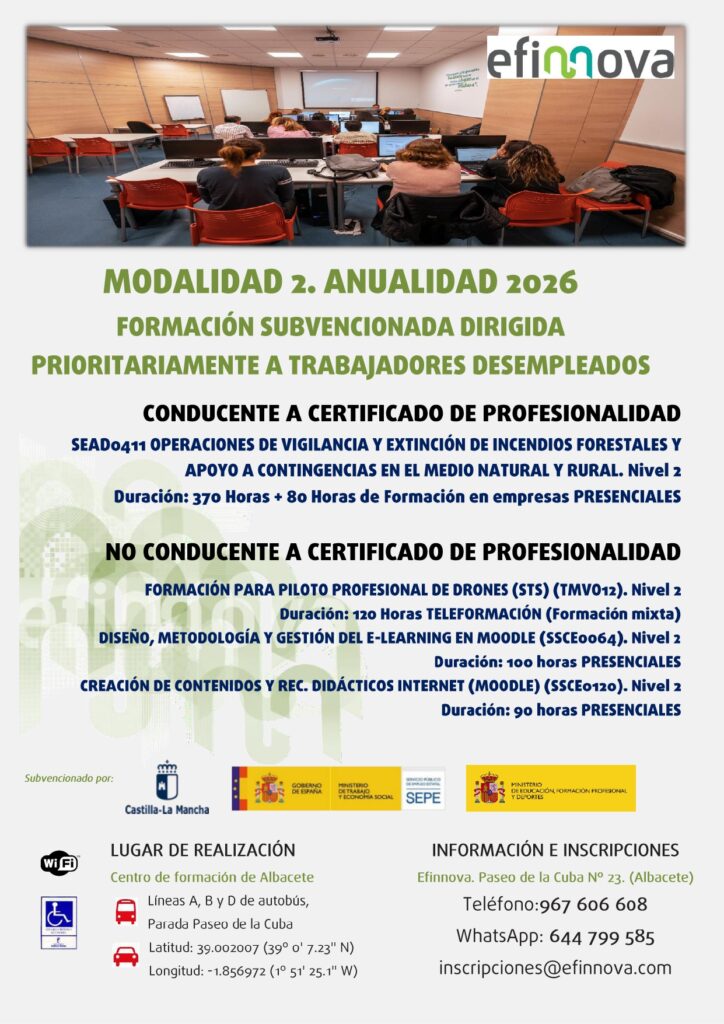 Accede y visualiza todos los cursos que tendrá disponible Efinnova en el año 2026 tanto para trabajadores ocupados, como para trabajadores desempleados.